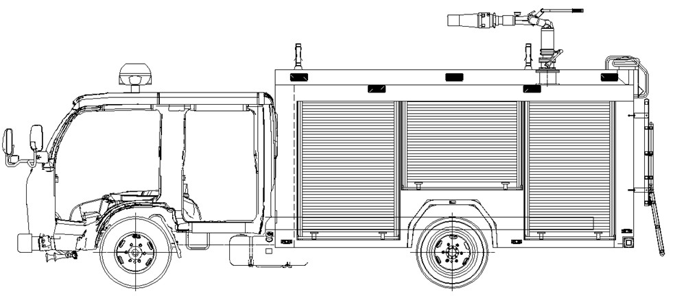 整車由消防員乘員室和車身兩大部分組成,車身布置采用內(nèi)藏罐式結(jié)構(gòu),左右兩側(cè)為器材箱,中部為水罐,器材箱后部為泵房。 |