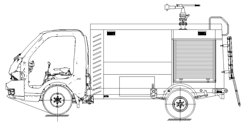 整車由消防員乘員室和車身兩大部分組成,車身布置采用整體鈑金式結(jié)構(gòu),外露水罐,后部為水泵房,罐體為平行長(zhǎng)方體廂式容罐。 |